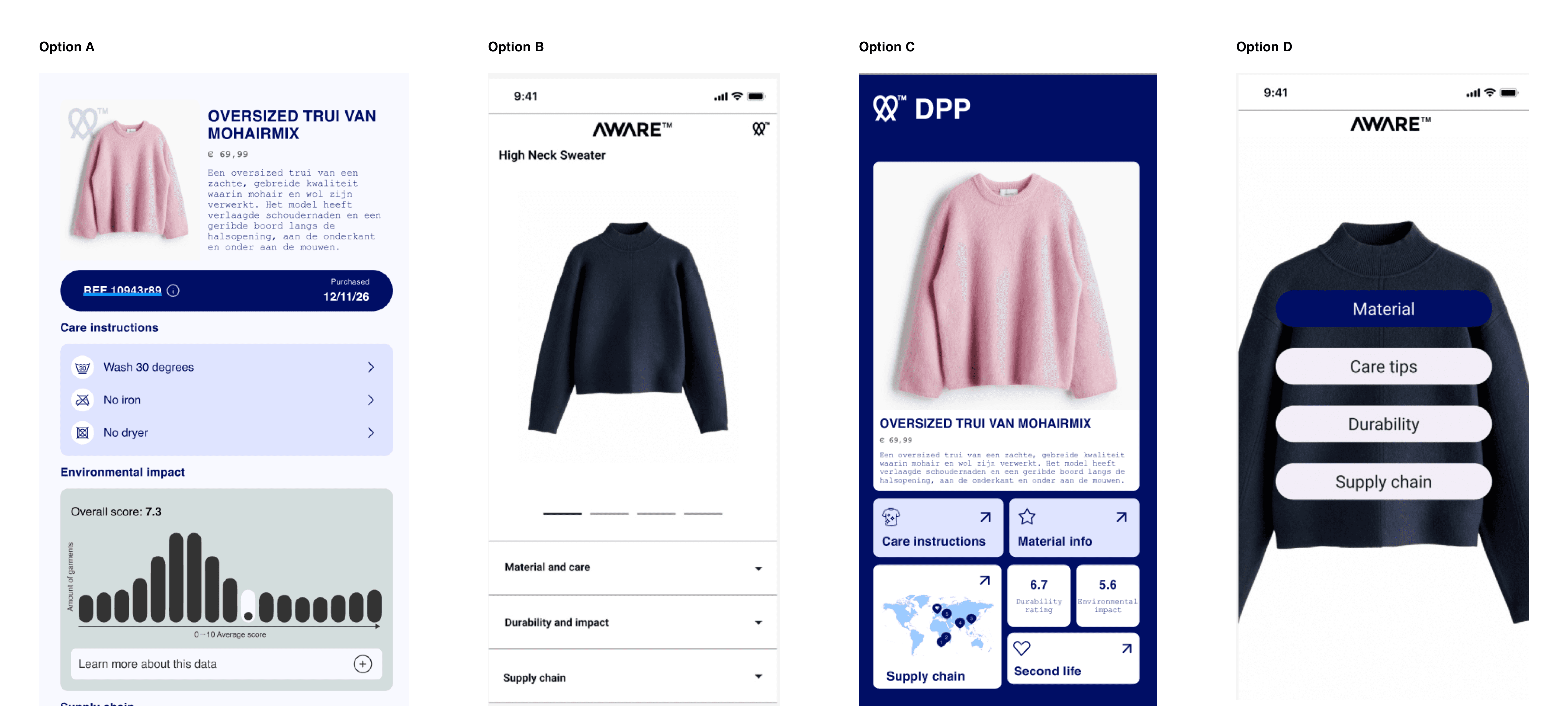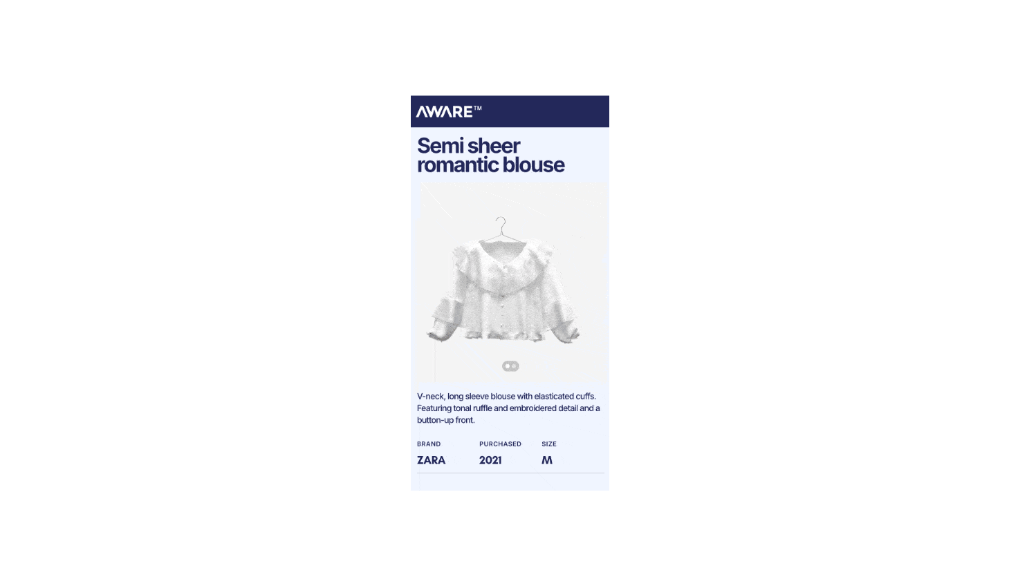 For my master in Digital fashion technologies I worked on an industry project together with Aware. Me and my group tackled this project by looking into how we can make DPPs more relevant for consumers and give value to their purchase and promote circular fashion with good after-life care options.